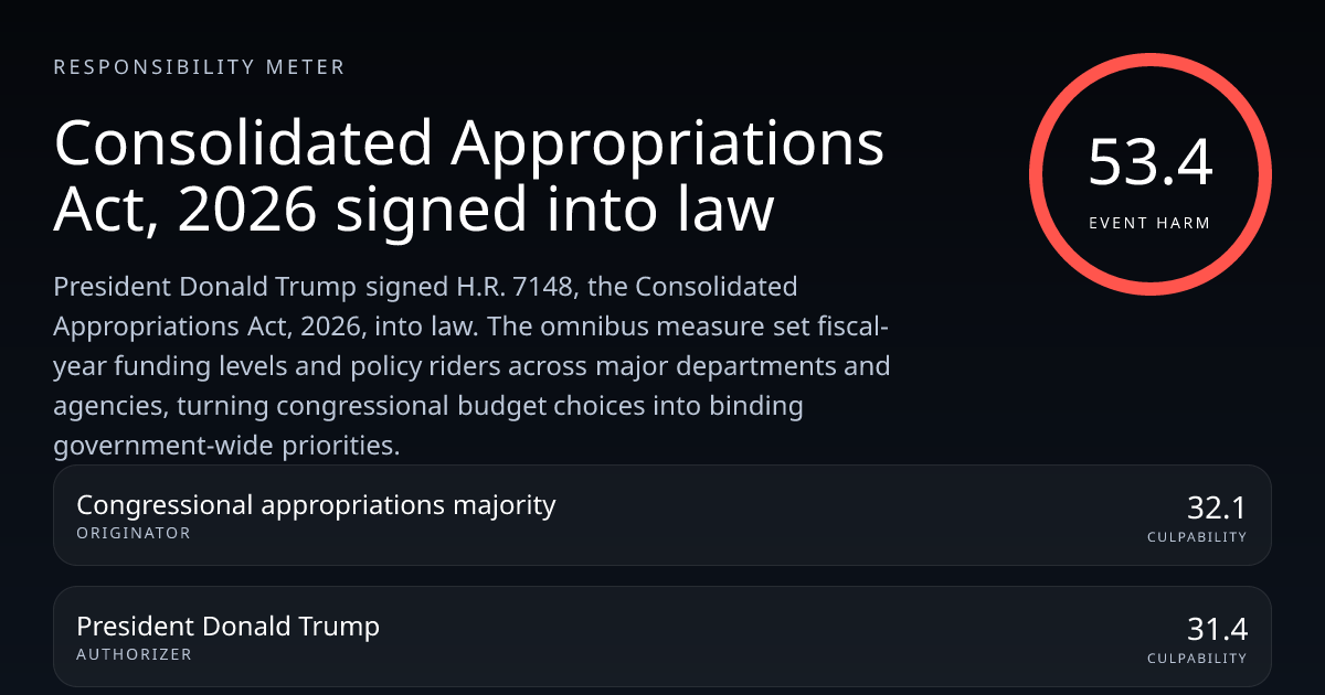 Congress assembled the funding package and policy riders, so the appropriations majority carries the central originator role for the national budget choices embedded in the law.