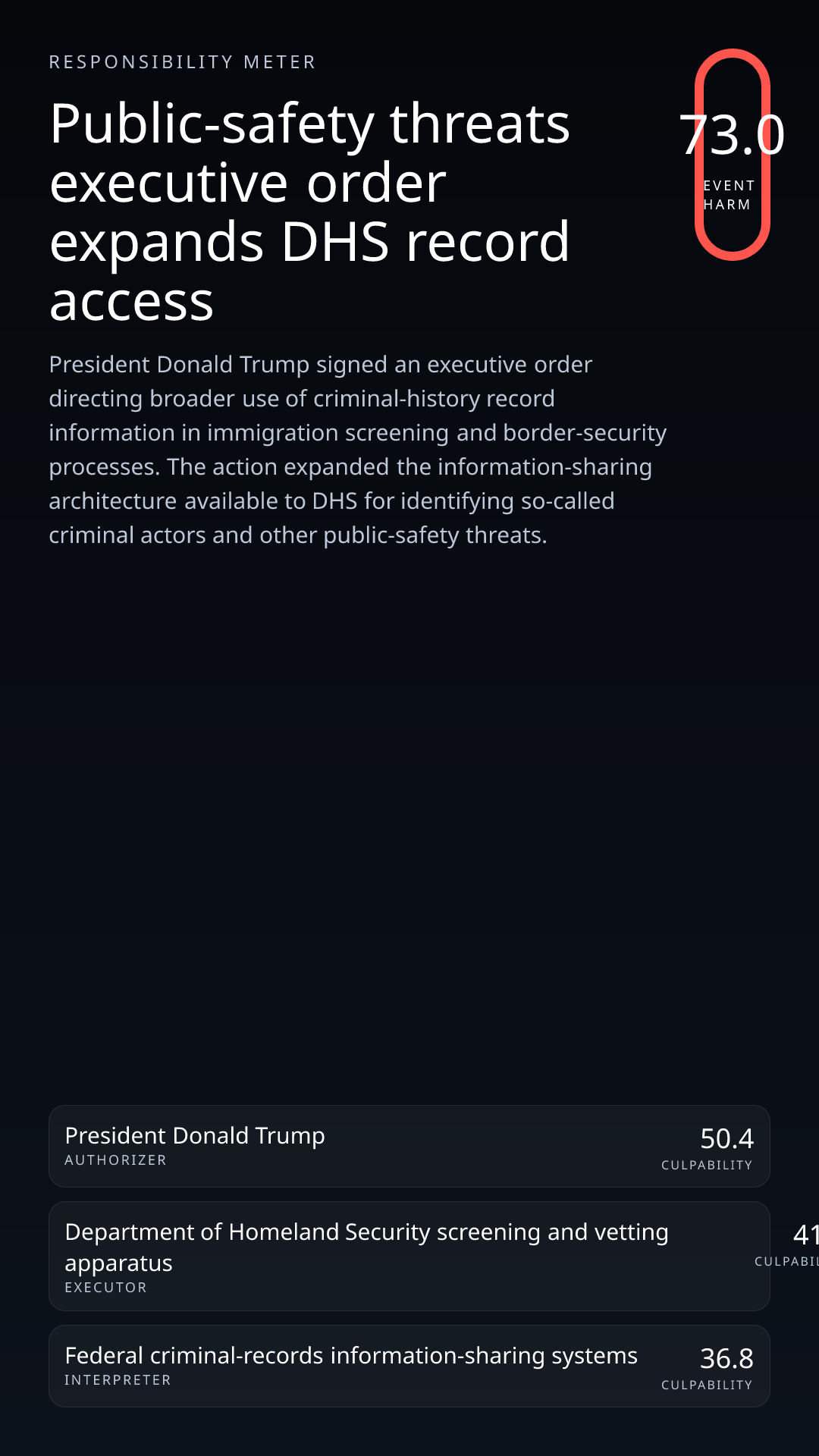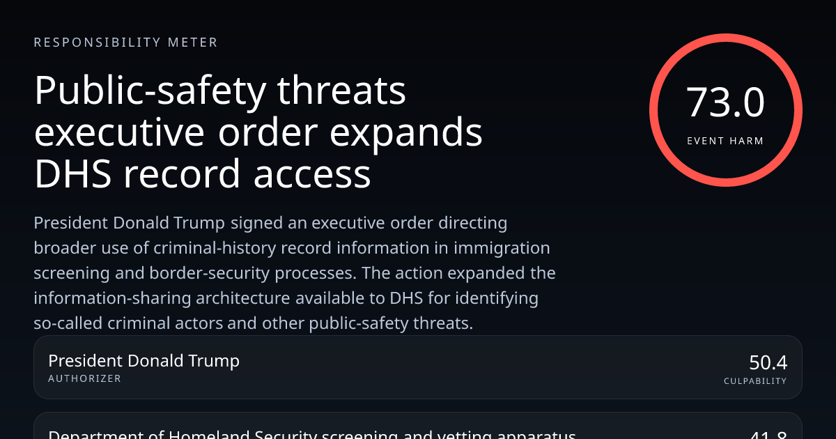 The president authored and signed the order expanding the federal screening and records-access framework, making the office the clearest authorizer of the change.