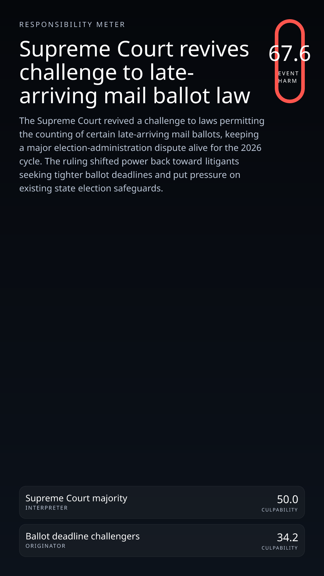 The Court's procedural ruling is the central legal act in the event because it reopened the challenge and changed the litigation posture of the ballot-deadline dispute.